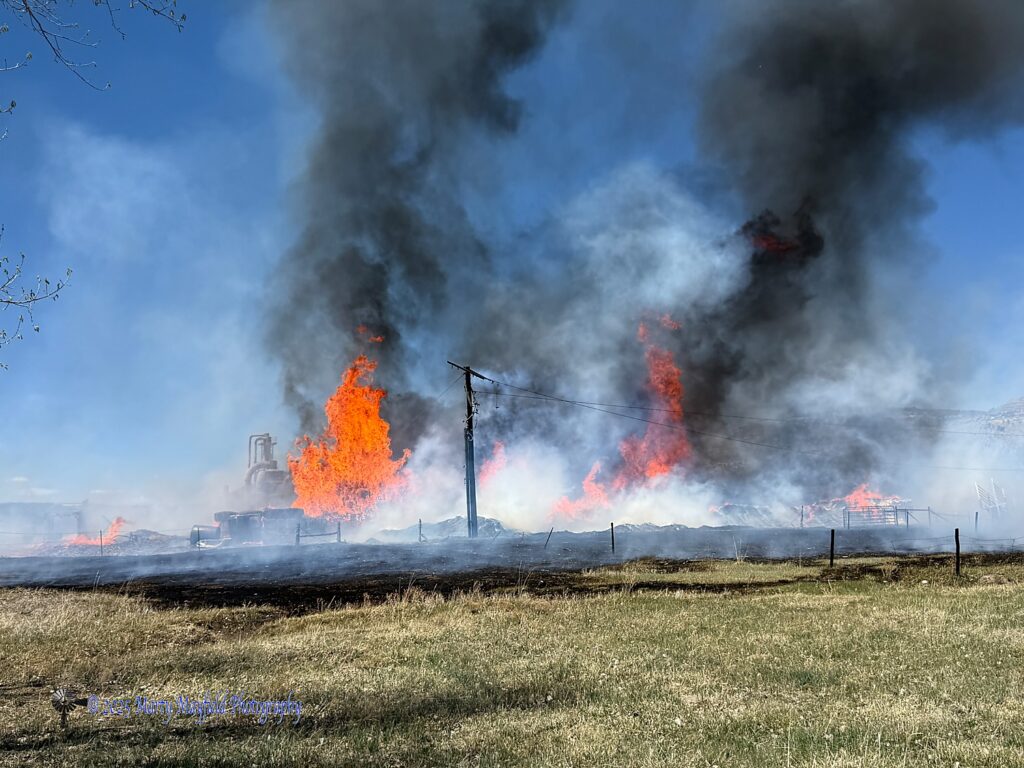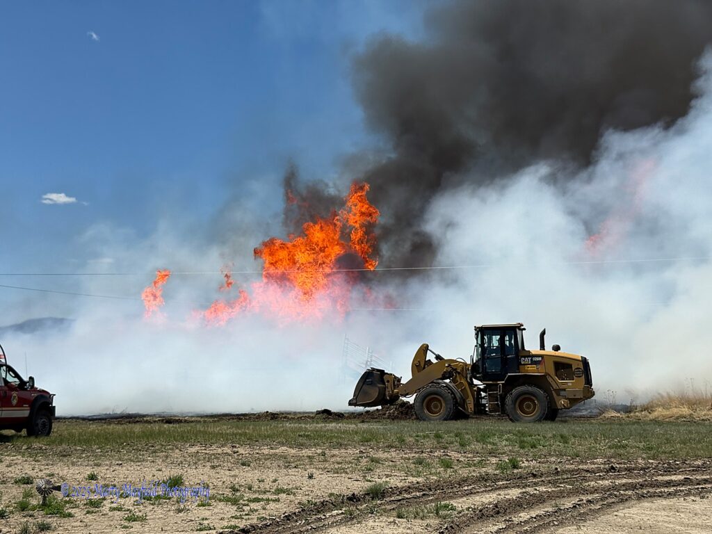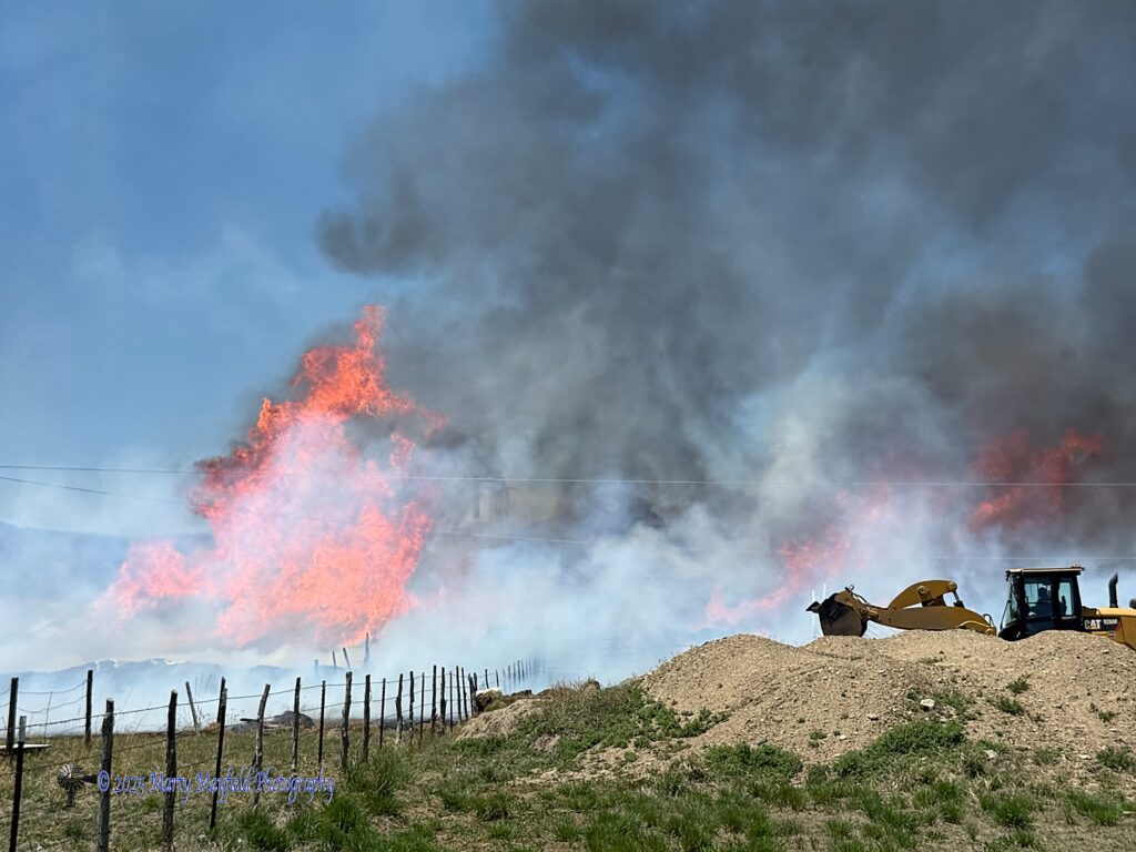 Fortunately for fire fighters winds were only 5 to 15 mph out of the southwest early on, had the winds been higher that situation could have easily gotten out of control with the blaze heading toward town and the housing area north of highway 555 and west of the railroad tracks. By mid afternoon the wind had died down considerably and was blowing in from the west.