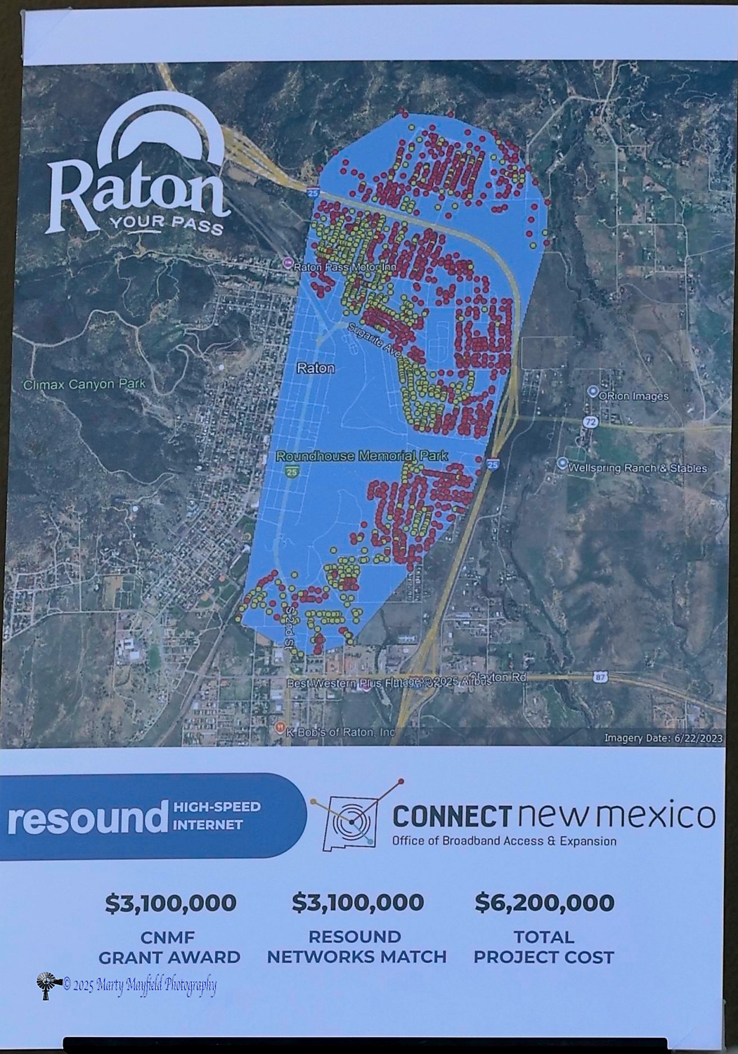 Currently most of Raton is served with fiber connectivity provided by Baca Valley Telephone via a PRCA grant to bring fiber internet to locations west of the railroad tracks and south to the La Mesa Drive area in south Raton. According to Director Jeff Lopez office of Broadband Access and Expansion the PRCA grants have no minimum speed limits on their grant money as does the grants that Resound applied for. The minimum speed limit for the Resound grants is 100 mbps up and down, however Resound will up that and offer 1 gig service to Raton customers.