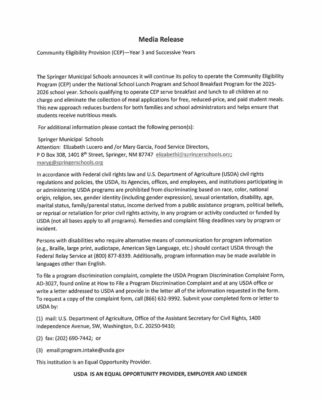 Springer Municipal Schools Media Release On School Lunch Program