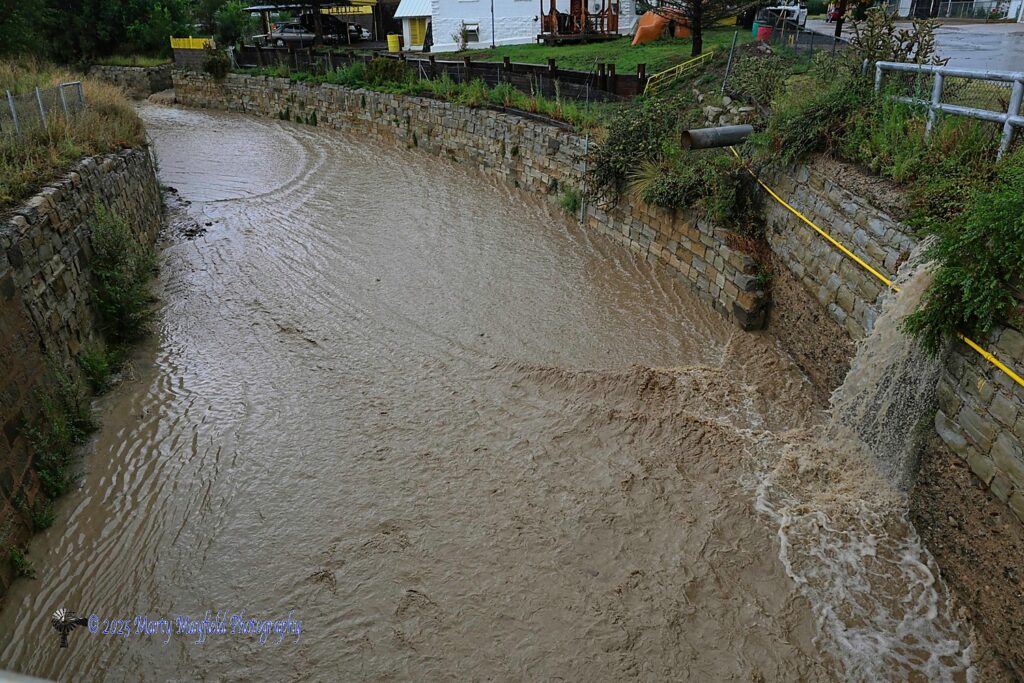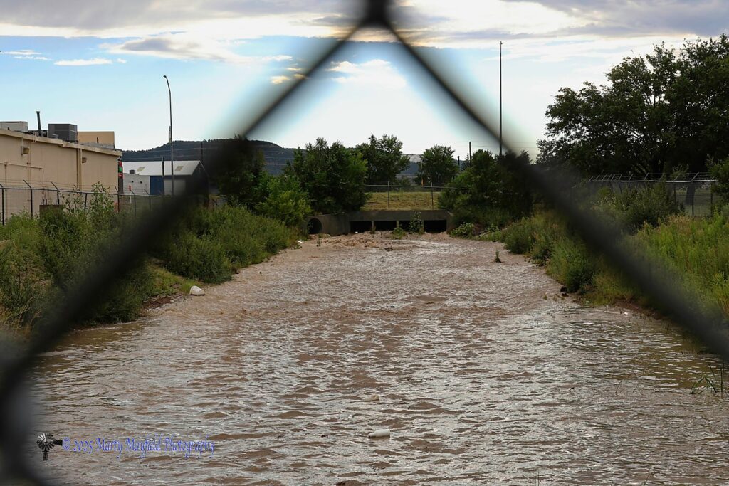 This unlucky motorist found out just how deep the water was on north Second Street Friday evening as it got stranded in the standing water.The water was too deep for this vehicle at the end of Second Street and Canyon Drive Friday evening after Raton received over an inch of rain.Raton Creek was running bank to bank with drainage coming in at Terril and Sugarite Friday evening.Water filled the drainage ditch by the old K-Mart building as several areas in south Raton lost electricity after lightning hit a power pole.Water entered the drainage ditch at the old K-Mart from under south Second Street Friday evening.