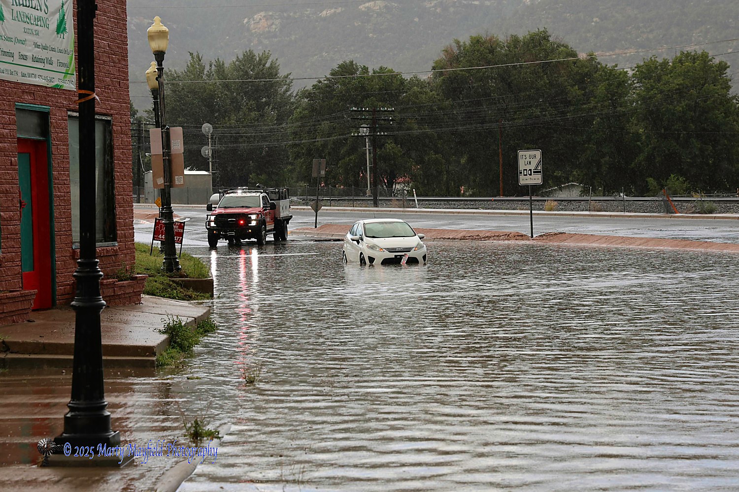 It rained once again in Raton, this time causing flooding in north Raton where Canyon Drive meets North Second Street stranding a car in the roadway.