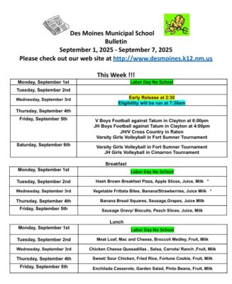Des Moines Municipal School Bulletin September 2, 2025 – September 7, 2025