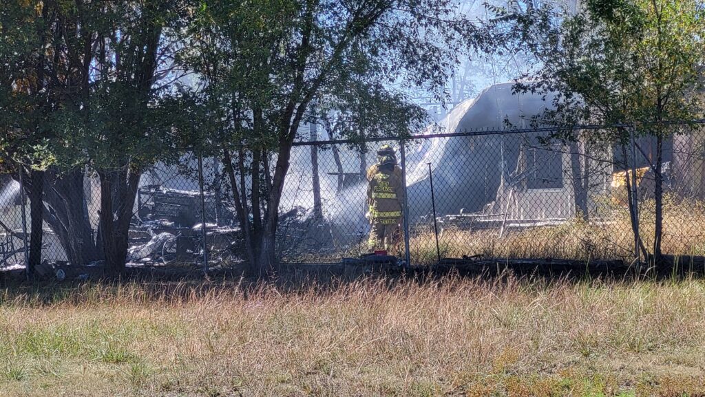 Raton Fire and Rescue didn’t have to travel far to the scene of a noon-time explosion and fire as the incident occured just a little over 100 yards west of Raton Fire Station #2 on West Troy at about 12:15 pm on Thursday, Oct. 2. The trailer was completely destroyed and was unoccupied at the time of the explosion and there were no reported injuries. Utilities had been shut off to the address prior to the incident and, according to neighbors, the structure had been empty for some time.