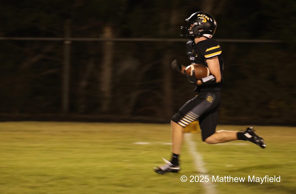It was a foot race and Cael Walton easily won it as he sprints down the field for a Raton TD in the second quarter of action during the first district game of the season against Legacy Academy in the Jungle Friday night October 3, 2025.