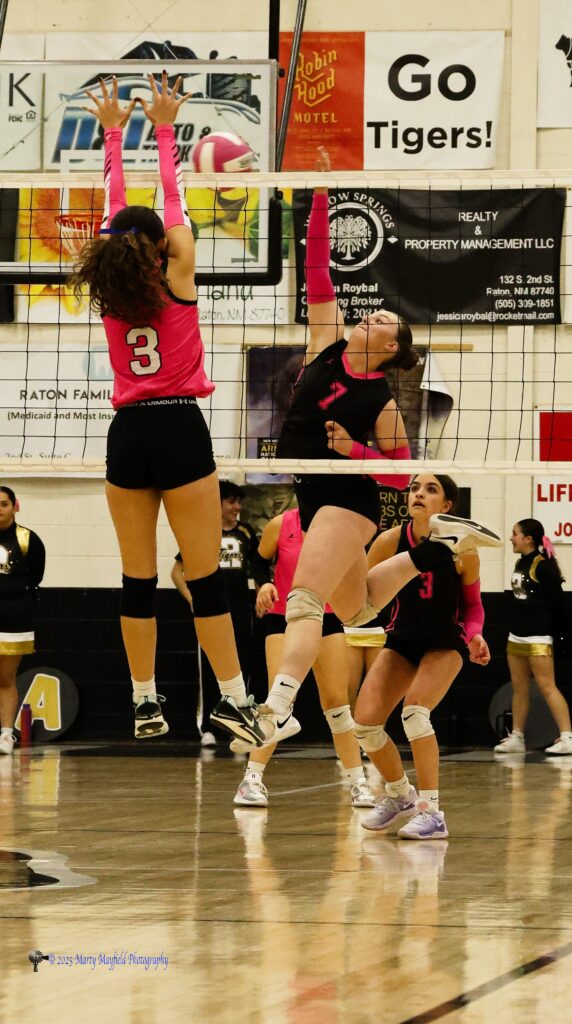 The Raton Lady Tigers took the court in Tiger Gym for a district match against the Pecos Lady Panthers Saturday afternoon October 25, 2025 where both the JV and Varsity marked the win column.
