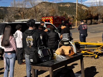 At the end of the day, the students were very surprised by a medical helicopter presentation brought together by the Raton Fire Department. They were able to learn about the many different jobs that make these flights possible for rural communities from mechanics, pilots, paramedics, nursing, business and marketing, etc.