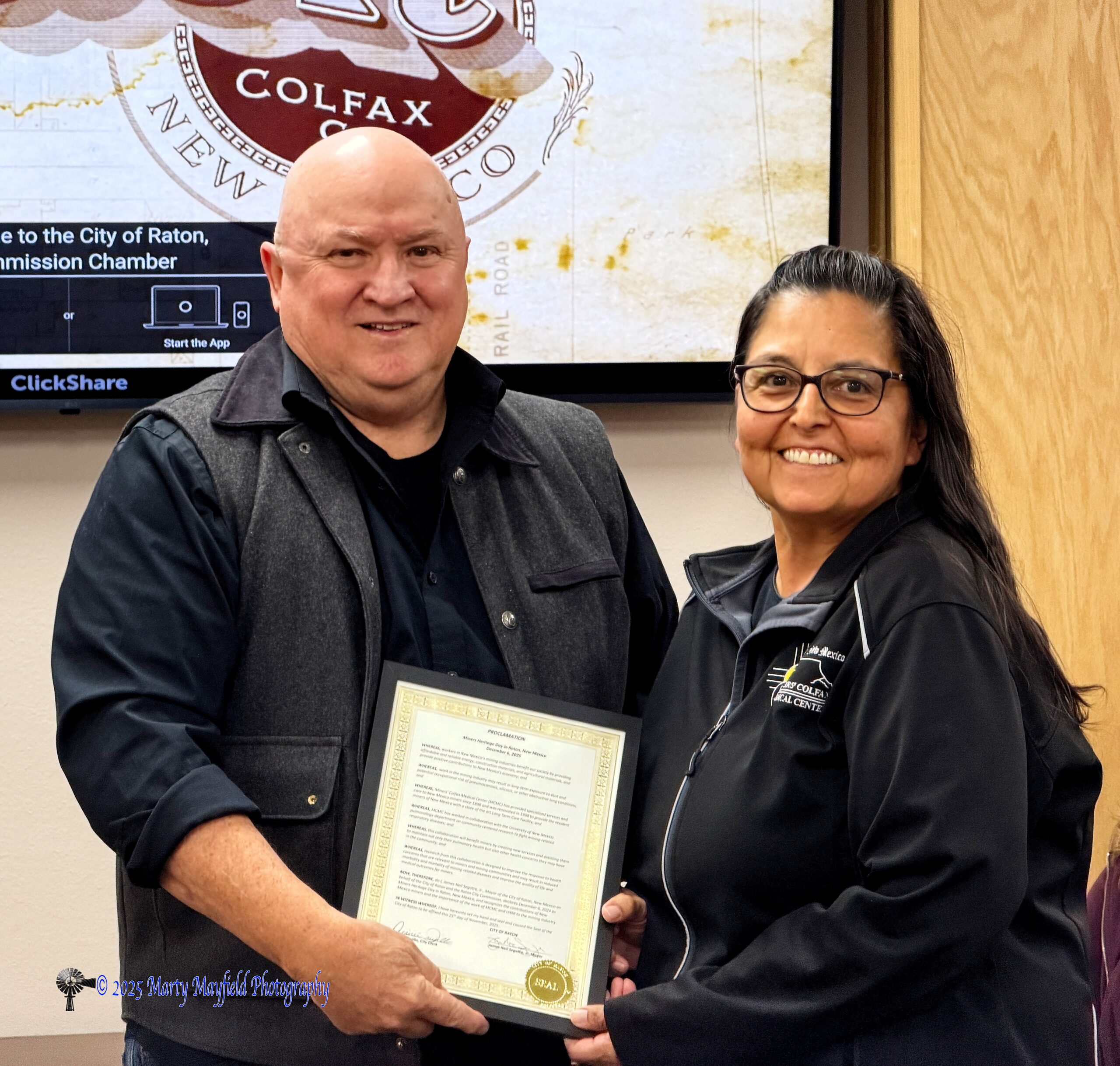 Kimberly Chavez accepted the proclamation for Miner’s Heritage Day on December 6. 2025 from Mayor Neil Segotta Tuesday evening November 25, 2025.