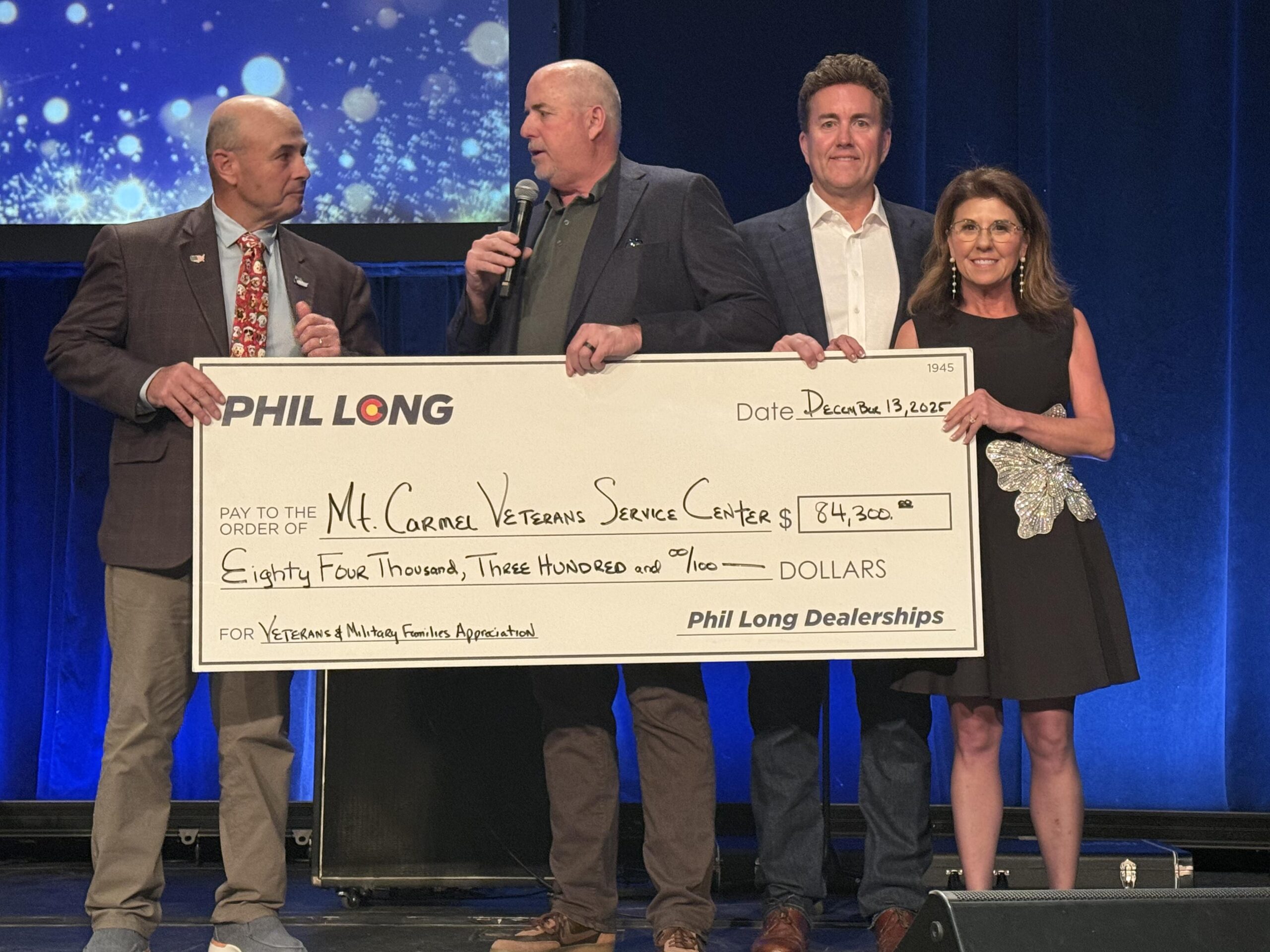 In an independent study by the National Institute for Social Impact, for every dollar invested in helping veterans, Mt. Carmel Veterans Service Center doubles its value in services to the veteran community. Similarly, Phil Long Dealerships’ donation will support Mt. Carmel Veterans Service Center in providing nearly $170,000 in services back to those that have sacrificed for our country.