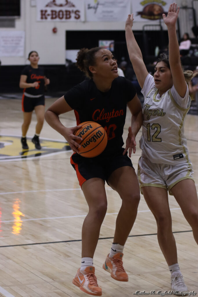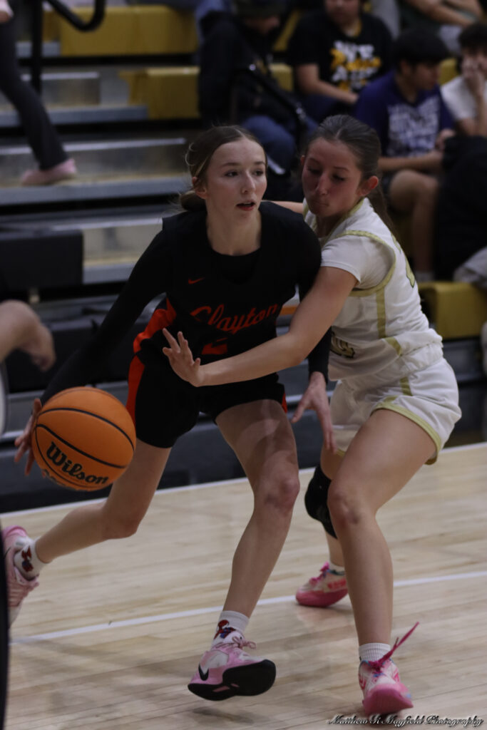 Third quarter action is where the fun began as Clayton had only six players. Two of those players could only play one quarter as they are also on the varsity team. At about the three minute mark in the 3rd quarter Clayton had three players left on the court. Rustlynn Mock and Apollo Mann along with M. Blan kept Raton at bay with Raton on top 24-23 after three quarters. Clayton took the lead 28-24. By the end of the fourth quarter Clayton had two players left on the court and had tied the score at 36. A one minute OT period finished out the game as Raton dropped in two for the 38-36 win. Raton struggled to find the basket, the girls just couldn’t get the ball to fall which was one of the big reasons Clayton kept it close and to the credit of the Clayton girls who played on and didn’t quit goes a pat on the back for their continued efforts.
