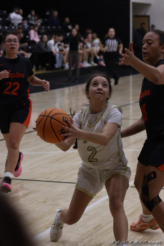 The varsity girls took the court with Raton taking an early lead against the 7-0 Yellowjackettes and had a 6-0 lead when Clayton finally got warmed up and found the groove to take an 11-6 first quarter score. Halftime saw a 26-6 lead by Raton. Clayton’s strong defensive play again often swarming the ball held Raton to a single digit score to finish out the game 48-9.