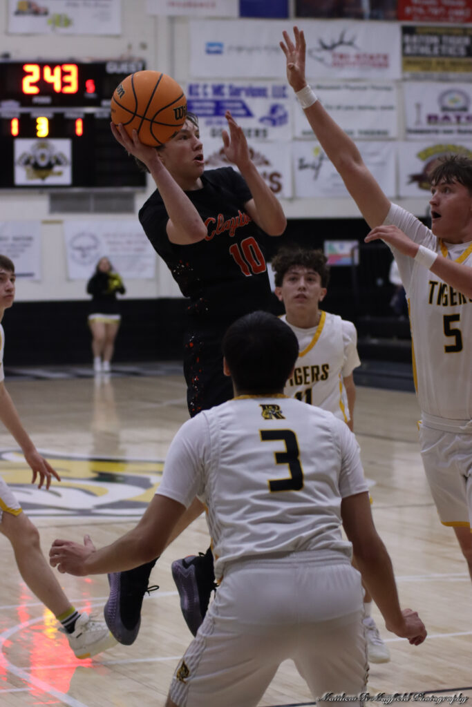 As the varsity boys found the hardwood it was Raton that took an early lead. Clayton came to the game in fourth place in district six with a 3-4 district record while Raton was right behind Clayton with a 1-5 district record. Raton lead 14-13 after one but couldn’t hold the lead and went into halftime with a 28 tie game. Third quarter play saw Raton outscore Clayton 11-9. As Raton has done so many time this year they struggled to hit the basket and saw the lead slip away for a 52-46 final score.