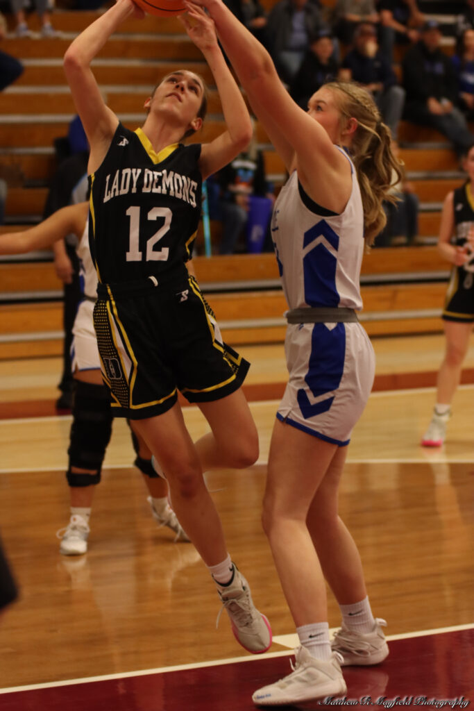The Lady Demons struggled to make the shots from the field but made up for it at the free throw line as going six of eight. The ladies only managed five points from the field for the first half of play as Alison Poling popped a three and Kay Ward hit a two pointer.