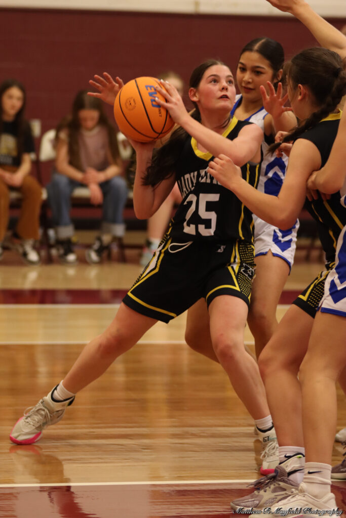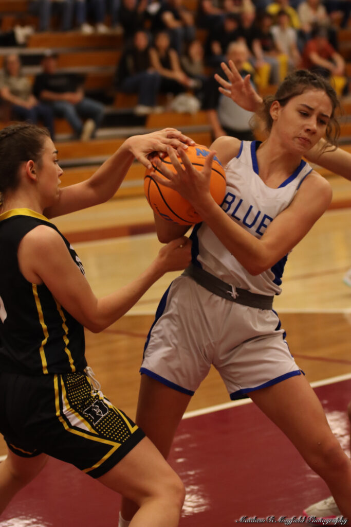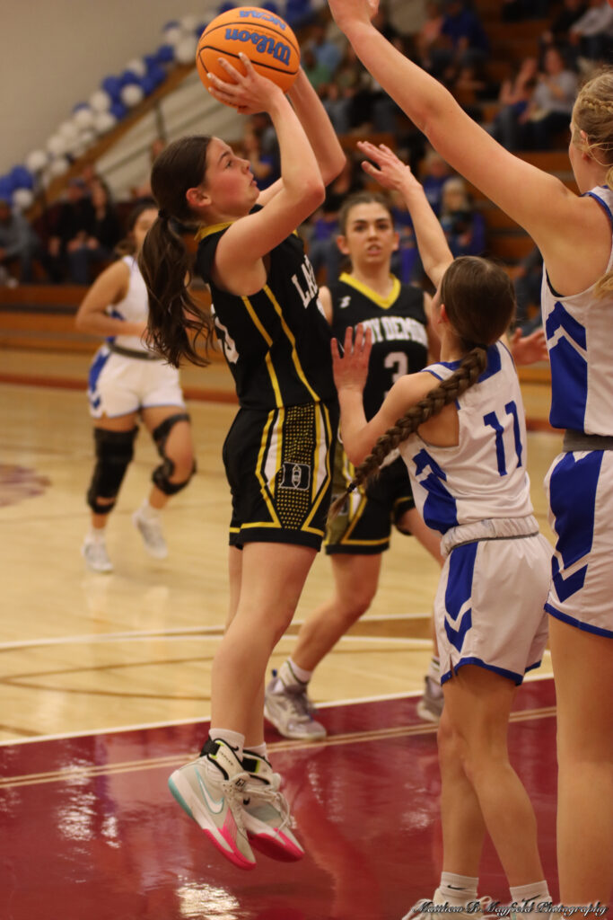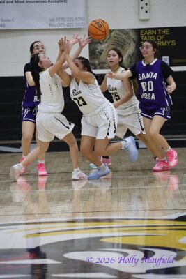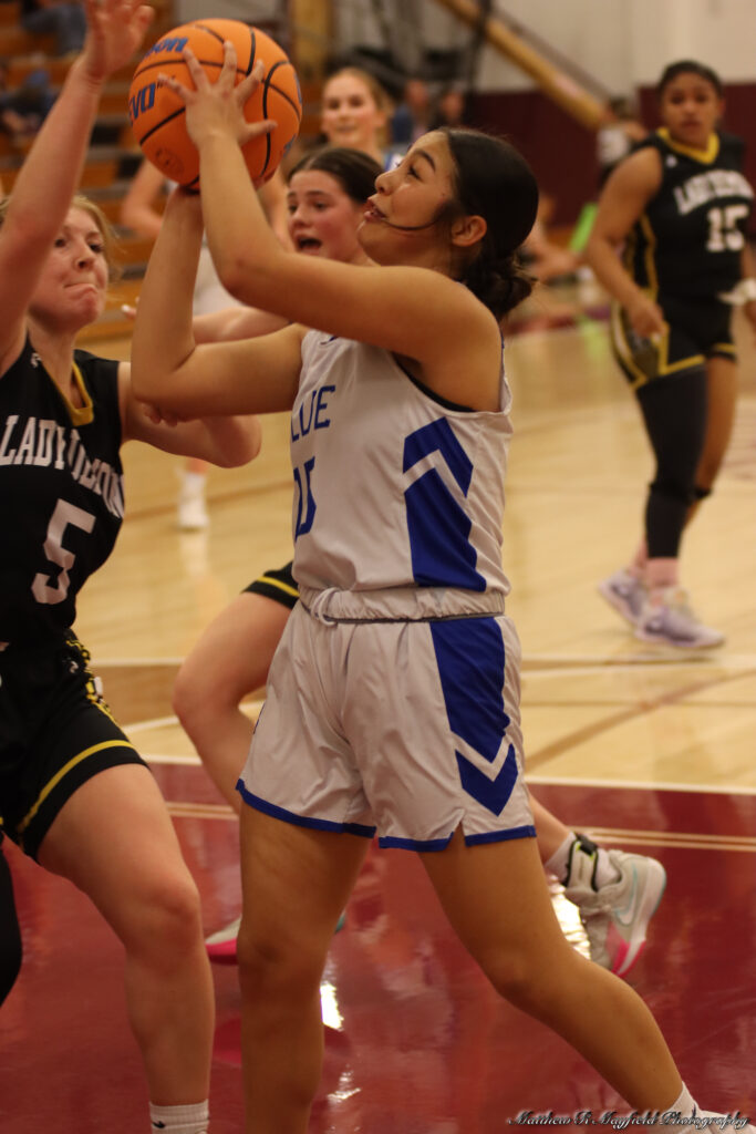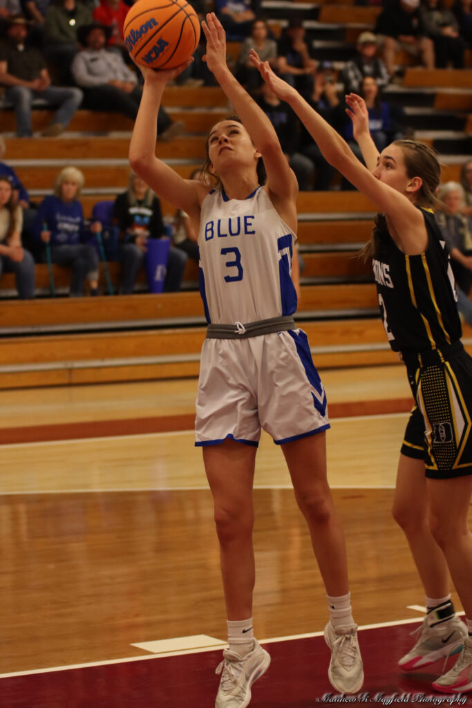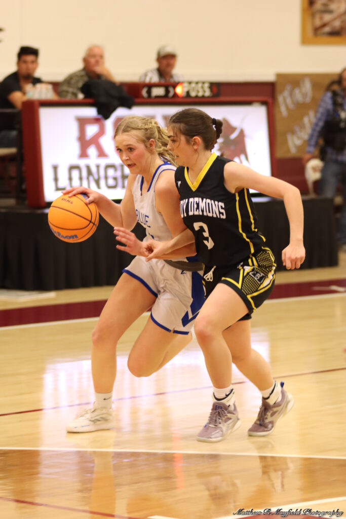 Reagan Doherty, Tayla Proffitt and Dylan Clavel were the only point getters for Roy/Mosquero in the first half and all but one were from inside the 3-point line as the girls worked the ball inside for the sure shot close to the basket.