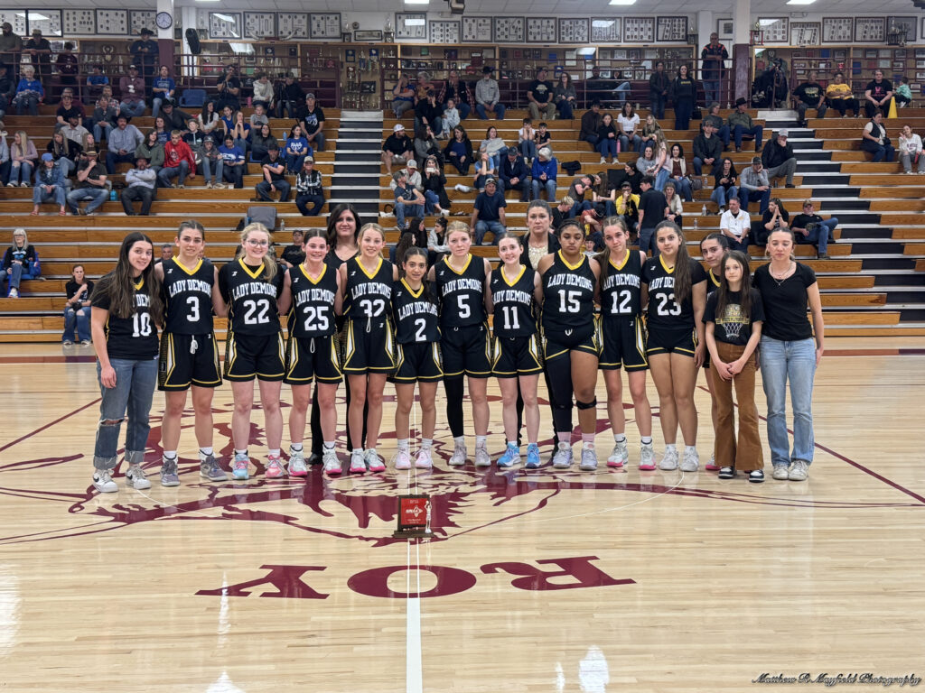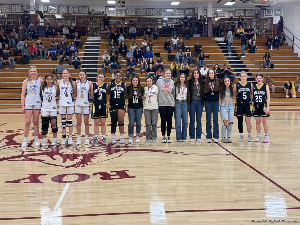 During the second half of play the Lady Blue held the Lady Demons at bay not allowing the outside shots to be made. As the final buzzer sounded on the district championship game it was a 61-28 win for Roy/Mosquero as they remained undefeated in district play.
