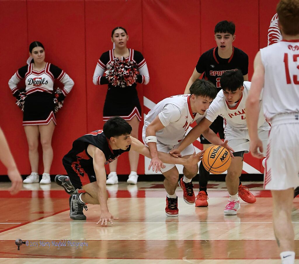 Cimarron began the game controlling the jump ball and went on to outscore the Red Devils by 11 in the first quarter of what became a face paced aggressive ball game. The play continued into the second quarter with Cimarron holding Springer at bay with strong defensive play and keeping the Red Devils from making the shots and forcing off balance shooting. At halftime the Rams held a 33-24 lead.