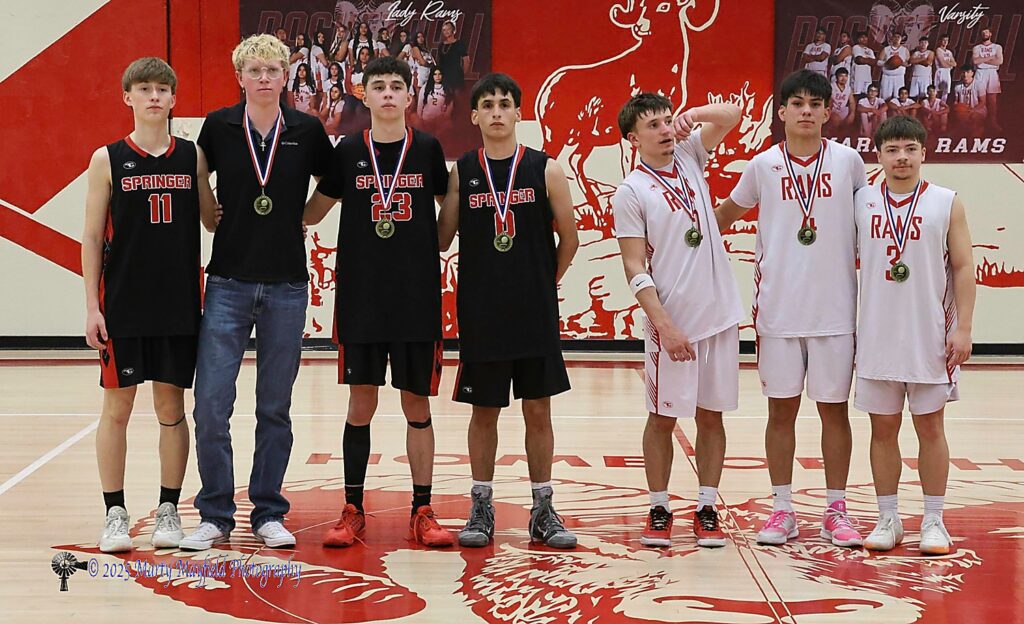 Springer had a much longer road to the championship game as they battled the New Mexico School for the Deaf and won that game 83-57. Then they defeated Des Moines 68-35 and traveled to Mosquero for a game with the Blue where they won 58-48 to get the honor of playing in the district championship against Cimarron.