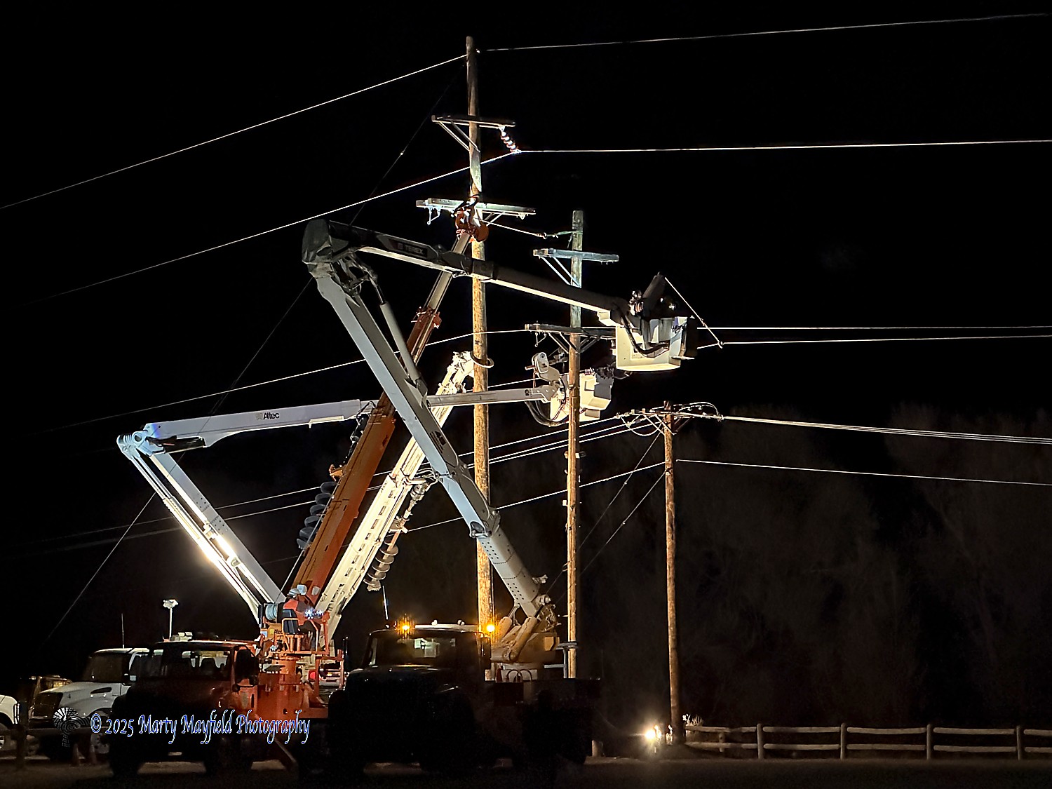 Once the work was completed and all work crews were clear of the lines RPS contacted Tri-State Generation to begin the reenergizing process. By about 2:00 a.m. power had been restored to Raton.