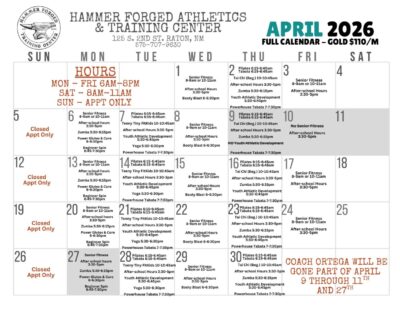 Find out more »Hammer Forged Athletics & Training Center Full Calendar