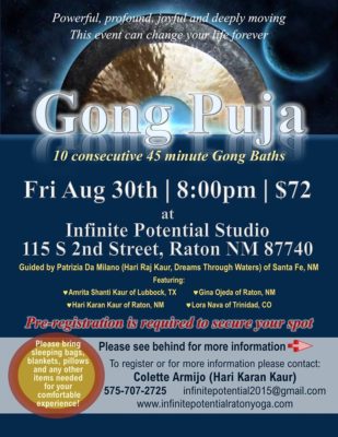 Find out more »Gong Puja – Leap into your Infinite Potential ~ Infinite Potential Raton Yoga