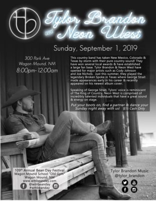 Find out more »Sunday Night Bean Day Dance -Country – Tylor Brandon and the Neon West Band ~Hosted by Wagon Mound Bean Day Celebration