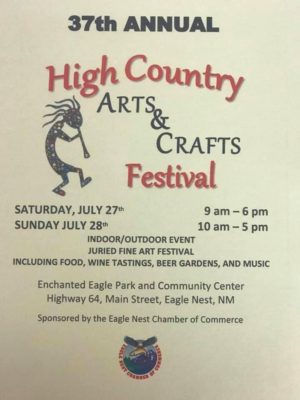 THE EAGLE NEST CHAMBER OF COMMERCE 37st ANNUAL HIGH COUNTRY ARTS & CRAFTS FESTIVAL Beer garden, wine tasting, live music, food booths and MORE! July 27 Saturday 9 am‑6 pm July 28 Sunday 10 am‑5 pm The High Country Arts & Craft Festival is a juried show open to qualified…