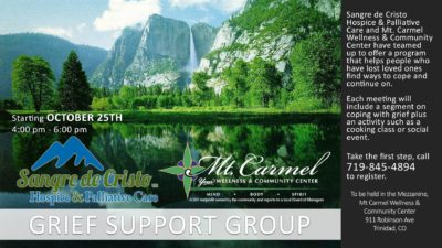 Many people suffer from the loss of a loved one. It is often challenging to move forward after such a loss. Mt. Carmel Community Center and Sangre de Cristo Hospice & Palliative Care are here to help by offering a program designed to support people who now need to find…