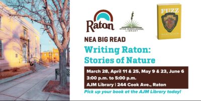 A 6-Session Intergenerational Writing Series What stories does our landscape hold? From mesas and migrating birds to backyard encounters and mountain trails, this special NEA Big Read writing series invites participants of all ages to explore the powerful connection between Raton and the natural world around us. Writers will gather…