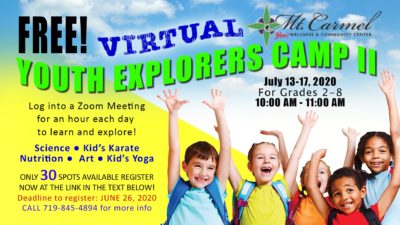 Find out more »Deadline to Register for Virtual Youth Explorers Camp II ~ Mt. Carmel Wellness & Community