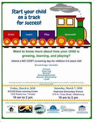 Find out more »Start your Child on Track for Success Screenings for Children ~Huerfano and Las Animas Counties Early Childhood Advisory Council