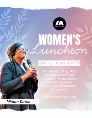 Join us April 25th at 11 AM for a Women’s Luncheon featuring a word from Miriam Torrez, testimonies, and time to connect.